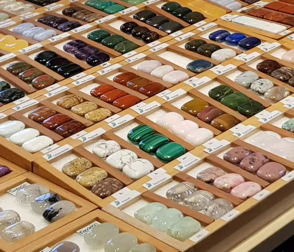 Steinketten werden von uns angefertigt. Auf Bestellung auch Geburtsketten (Astroketten) für Kinder und weitere Steinketten. Weiter im Sortiment: grosse Auswahl an Heilsteinen in diversen Formen, Bergkristall und Rauchquarz aus der Schweiz. Wundervolle Trommelsteine aus Madagaskar und...